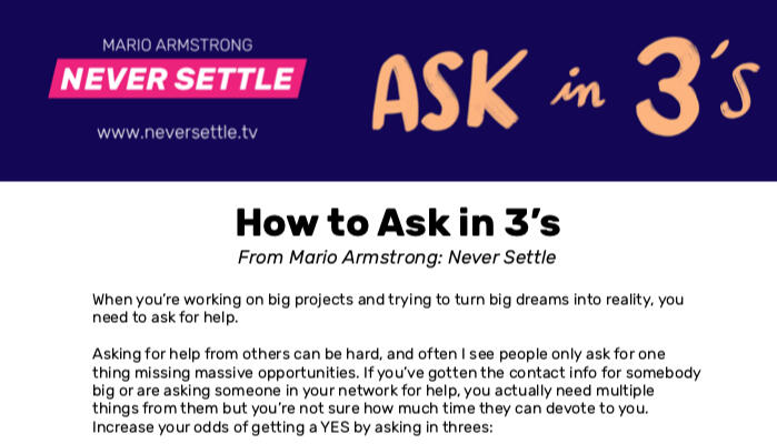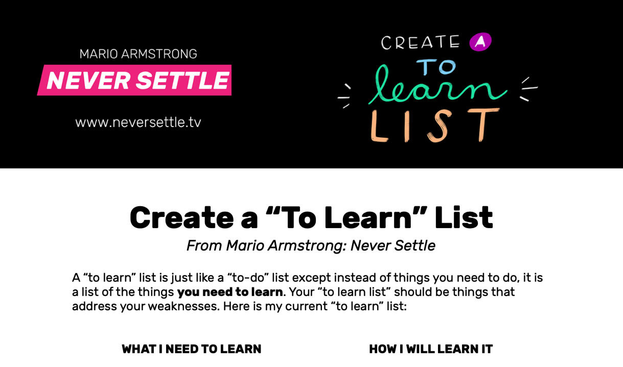 Mario Armstrong Never Settle is a Web television series that combines entertaining information and interviews with actionable advice and takeaways for creators to propel forward with their personal and professional goals.